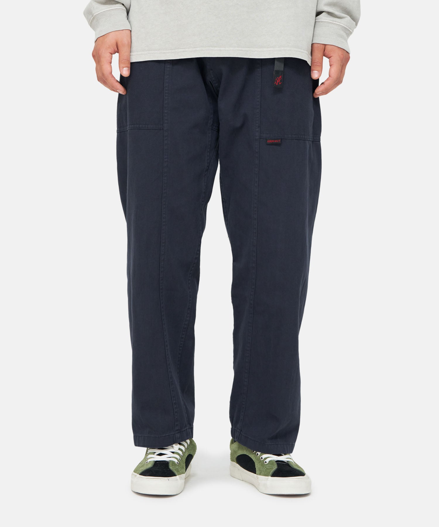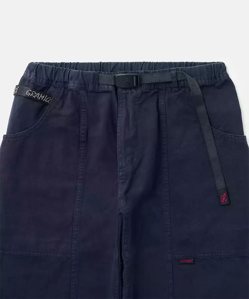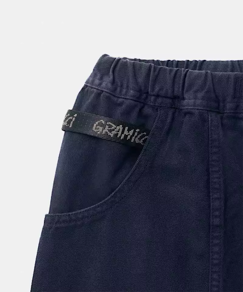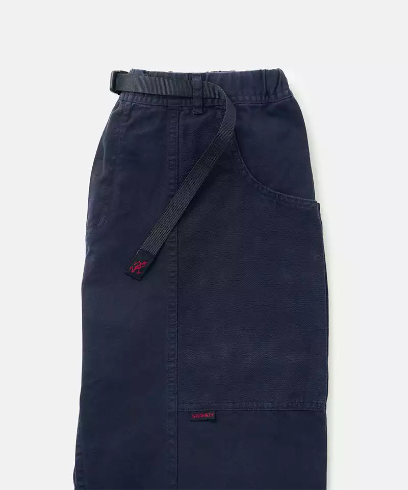 The Gadget Pants, a classic from Gramicci, were designed in the 90s as multipurpose utility pants. They have a relaxed, straight-legged shape and contrasting canvas pockets that wrap around for optimal storage. An additional webbing strip above the right pocket provides convenient placement for small items like keys, carabiners, or water bottles.